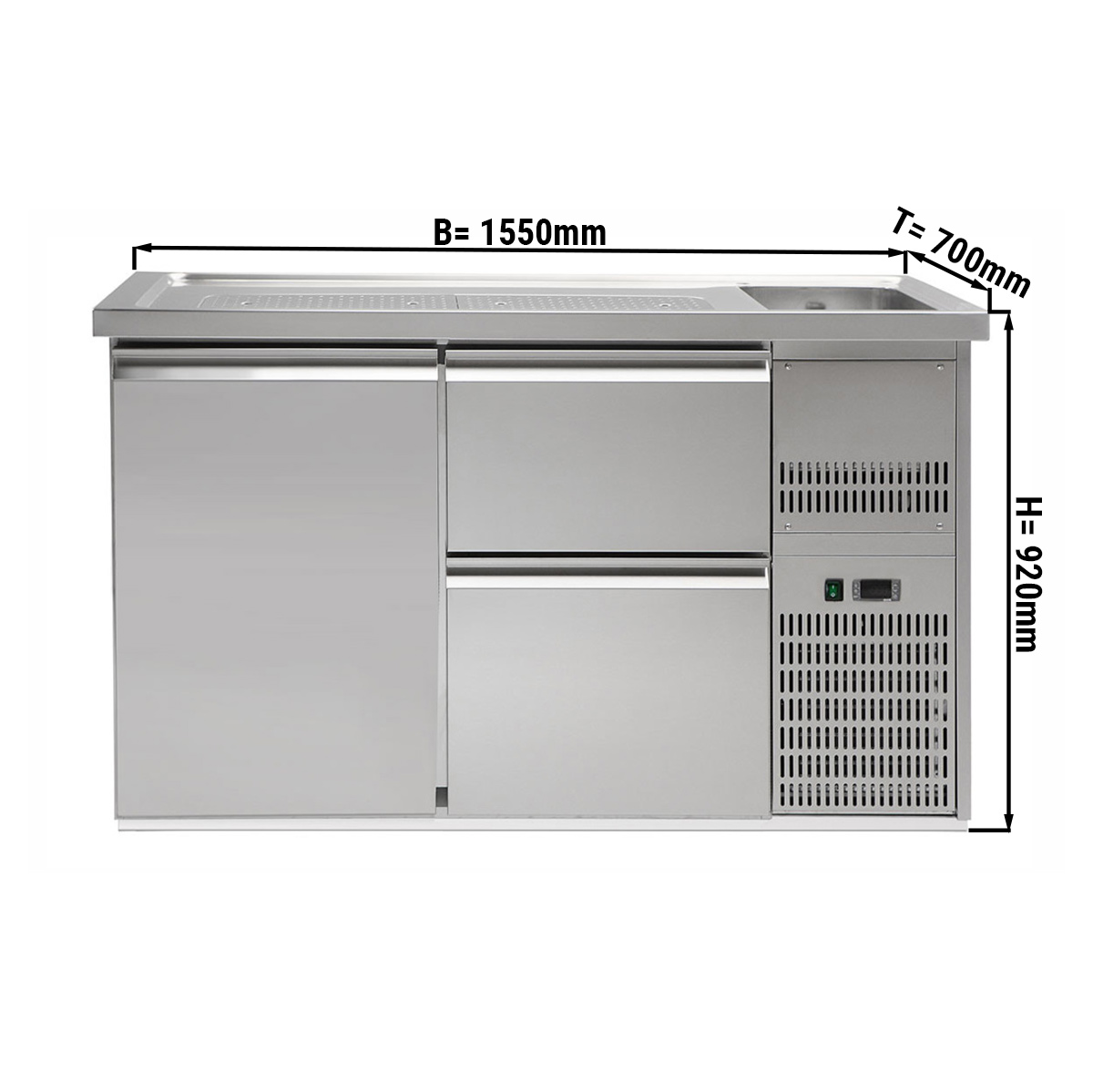 Пивной прилавок 1,5 x 0,7 м (1 дверца / 2 выдвиж.секции / 1 раковина) GGM Gastro