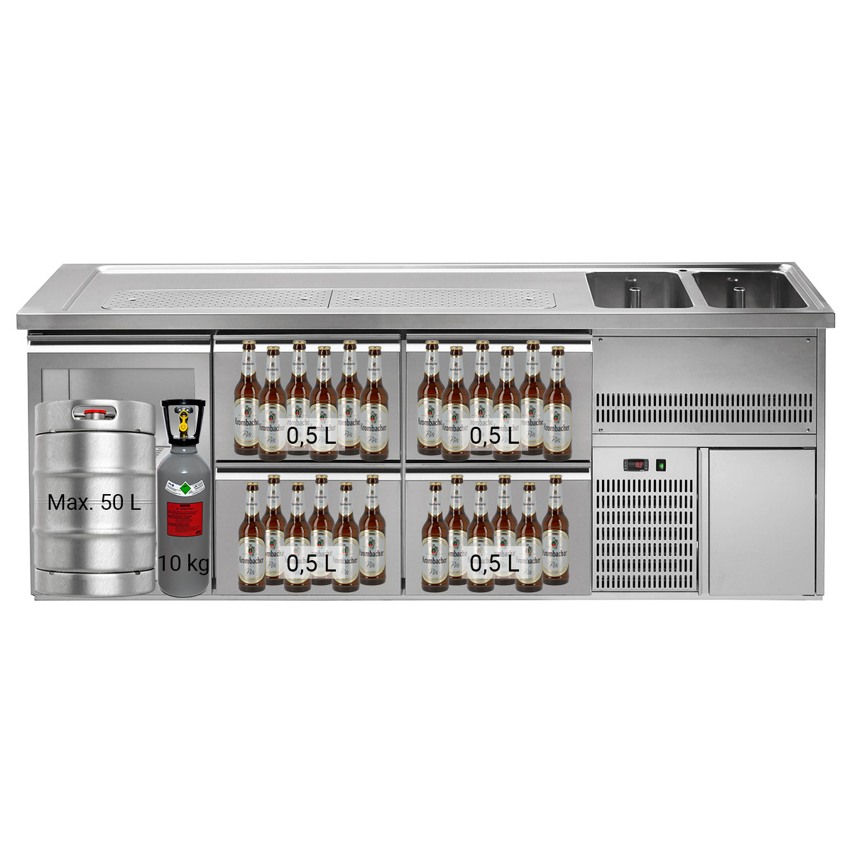 Пивной прилавок 2,5 x 0,7 м (1 стекл.дверца / 4 выдвиж.секции / 2 раковины) GGM Gastro
