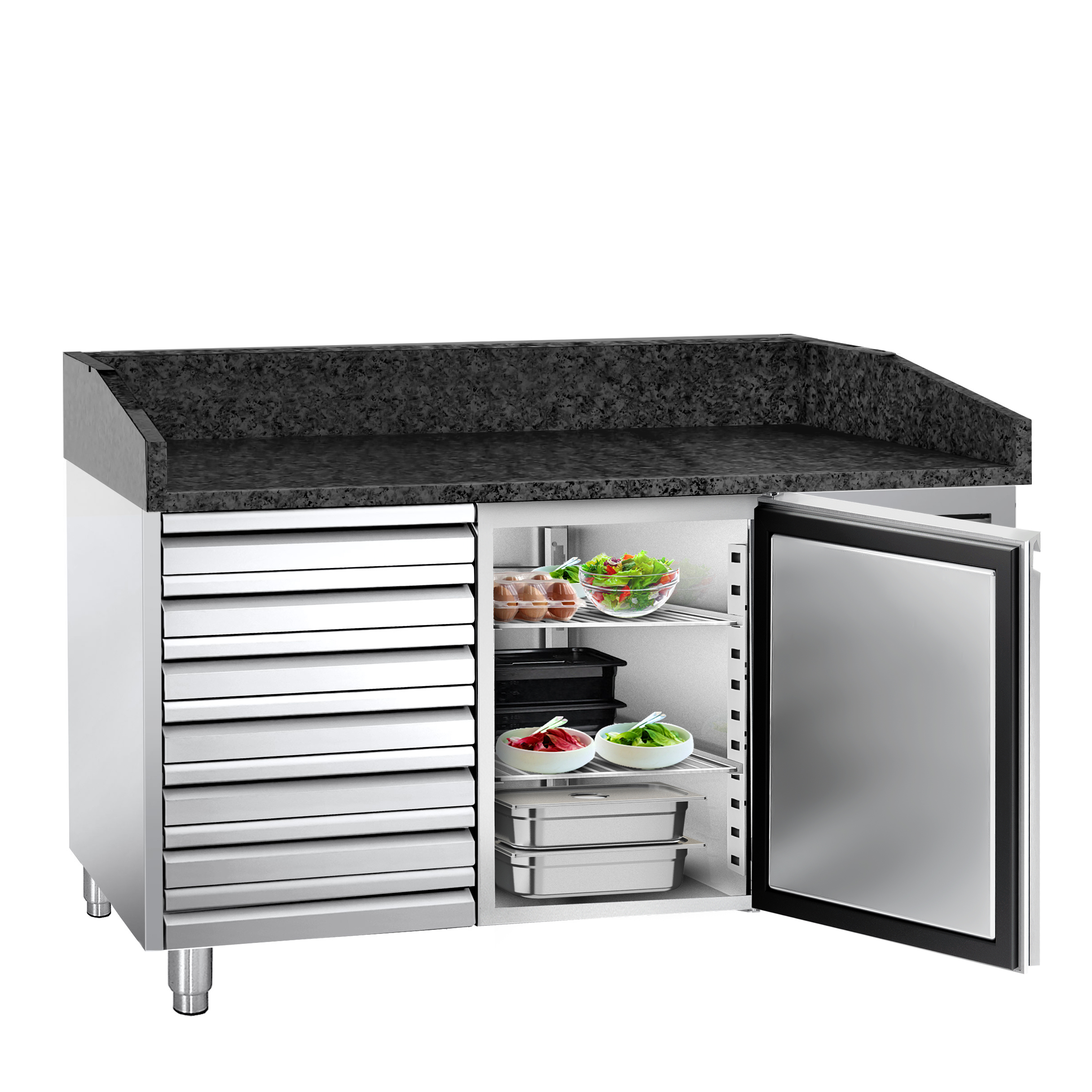 Холодильный стол для пиццы PREMIUM(размер: 1,5 x 0,8 m/ 1 дверь/7 нейтральных выджвижных секции) GGM Gastro