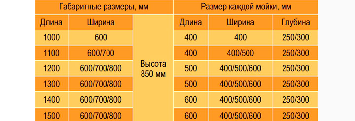 Внутренний размер чаши: 400х400, 400х500, 500х400, 500х500, 500х600 мм.