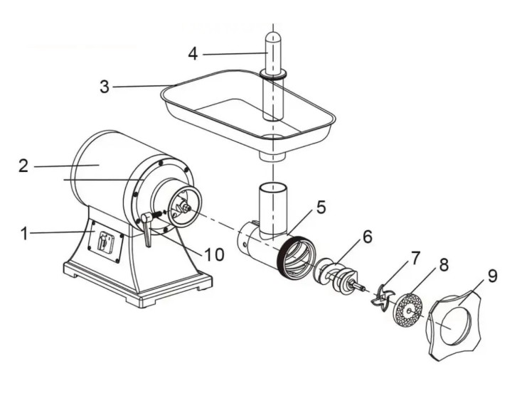 Решітка: 2 шт (6 мм, 8 мм) лезо: 2шт; штовхач; Насадка колбасы