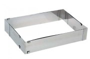 Металева розсувні форма використовується для випічки і збірки тортів у вигляді квадрата, прямокутника. Підходить для випічки бісквітів, виготовлення суфле, муссових тортів, виготовлення суфле, желе, салатів, десертів. та інших кондитерських виробів.