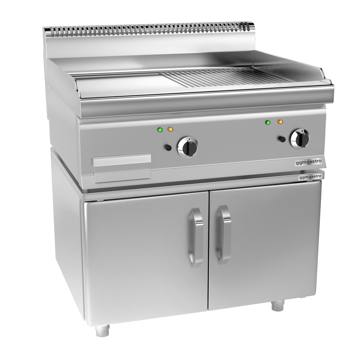 Жарова поверхня електрична - гладко + рифлена (9 kW) - з підставкою 2 скляних дверей GGM Gastro