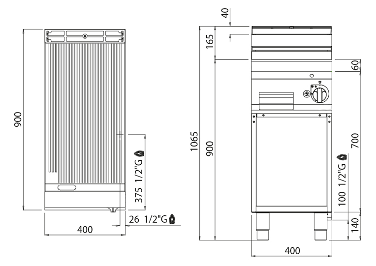 Поверхня жарова газова - рифлена (10 кВт) GGM Gastro