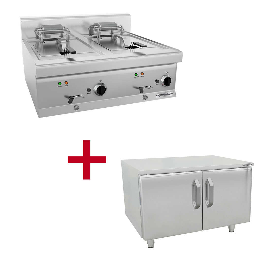 Фритюрниця електрична - 11,5 + 11,5 Л (18 kW) - з підставкою 2 скляних дверей GGM Gastro