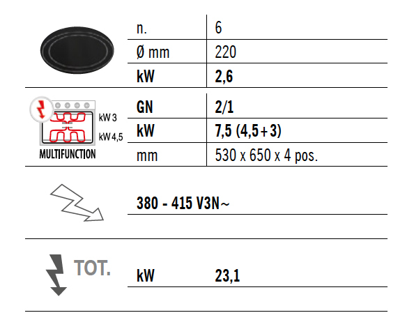 Плита електрична, 6 конфорок (15,6 кВт) + шафа духова електрична (7,5 кВт) GGM Gastro