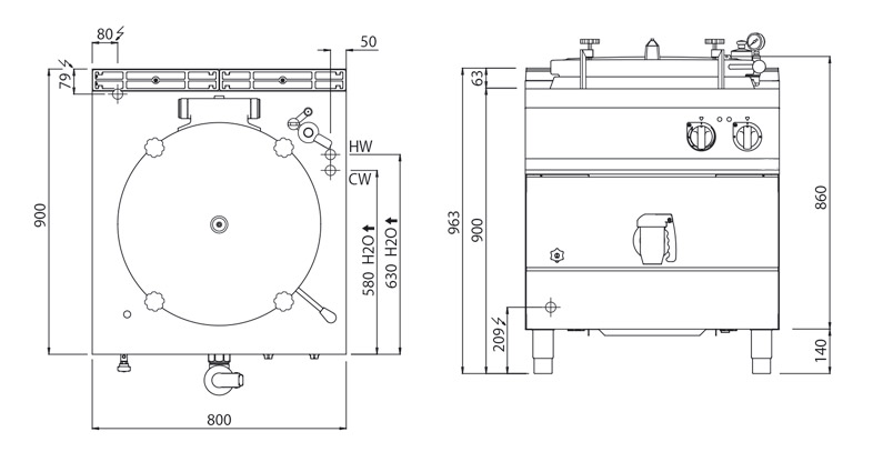 • Розміри котла Ш x Г: 600 x 540 мм