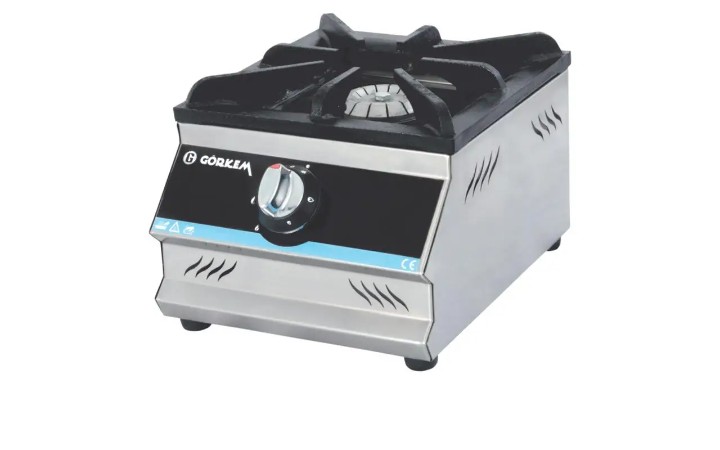 Плита газова настільна 1 конфоркова Görkem GO 10  призначена для професійної кухні невеликого кафе або торгової точки. На відміну від побутових газових плит  - Görkem GO 10  має збільшену потужність пальників, які розраховані на цілодобове використання довгий період часу. Під'єднується до балонного газу.  Корпус виготовлений із неіржавкої сталі.