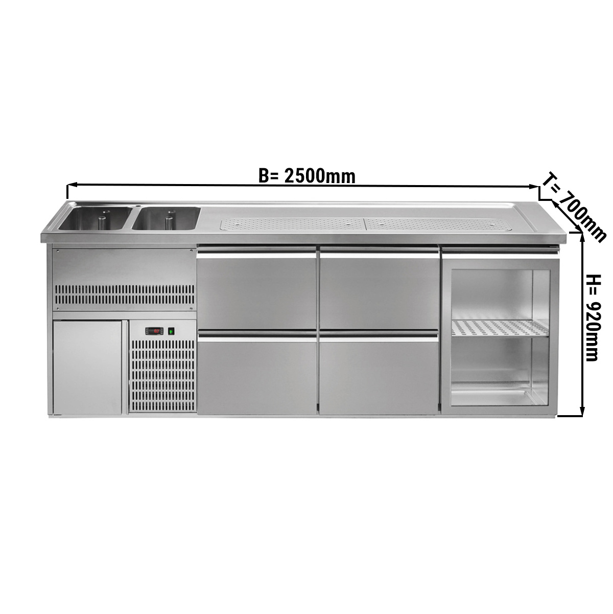 Холодильний стіл для пива 2,5 x 0,7 м - з 1 скляними дверима і 4 шухляди 1/2 + 1/2 GGM Gastro