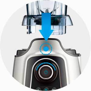 Датчик безпеки. Блендер працює тільки тоді, коли вакуумний контейнер повністю встановлений в корпус.