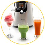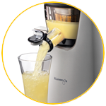 Якість соку. Запатентована система низькій швидкості обертання шнека JMCS, забезпечує збалансоване витяг м'якоті і соку. М'якоть і сік не нашаровуються, сік виглядає рівномірним за складом.