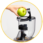 Оновлена конструкція шнека для найкращої переробки волокнистих фруктів і овочів: білої і червоної капусти, шпинату, селери, порею і т.п. При цьому зведена до мінімуму навантаження на шнек і м'якоть залишається під ним, що полегшує приготування живого соку.