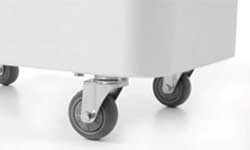 Чотири широких гумових колеса D 75 мм, в тому числі два поворотних з гальмом для легкої та зручною транспортування.