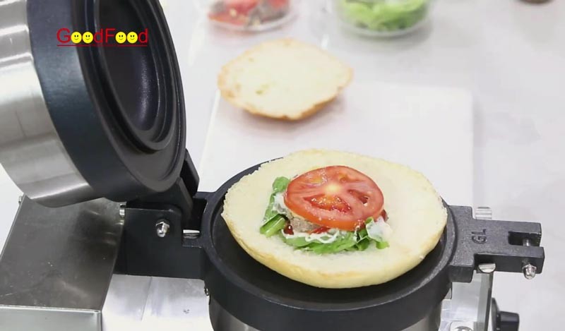 Контактный гриль GoodFood WB888RHB делает бургер в котором начинка закрыта со всех сторон и не распадается во время еды.