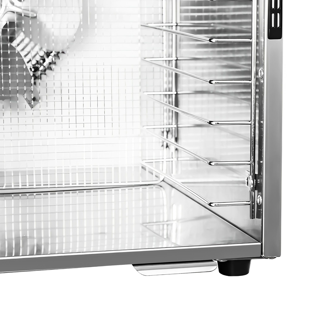 Профессиональный дегидратор GGM Gastro DGHB10 с горизонтальным обдувом и десятью лотками из нержавеющей стали используется для сушки фруктов, овощей, мяса, рыбы, грибов, для приготовления сухофруктов, пастилы