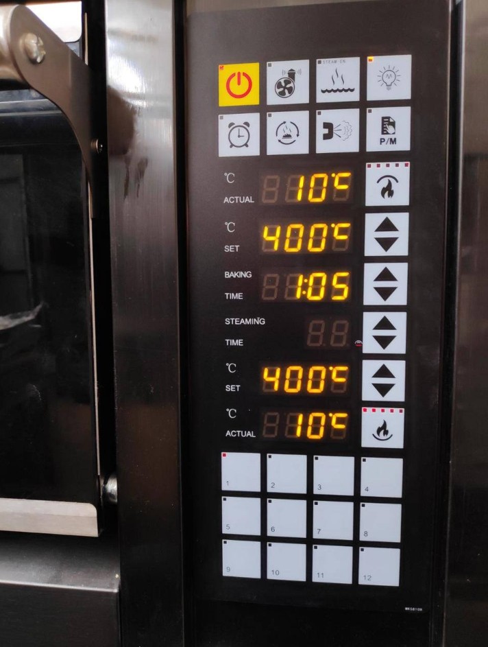 Оператор (пекарь) с помощью органов управления определяет температуру, время работы и наличие освещенности рабочей камеры печи. При оборудовании печи парогенератором для возможности пароувлажнения (опционально) оператор определяет подачу пара в рабочую камеру печи. Точность настроенной и фактической температур благодаря цифровому реле, задающему нагрев печи, и независимому цифровому термометру, показывающему реальную температуру в рабочей камере, что позволяет точно соблюдать технологию приготовления, обеспечивая получение высококачественной продукции. Заданная температура поддерживается автоматически. Независимая плавная настройка параметров (температуры и времени) для каждого яруса печи обеспечивает возможность одновременно выпекать разную продукцию при различных температурных режимах. Печь оснащена отдельной плавной регулировкой верхних и нижних нагревательных элементов с автоматическим поддержанием заданной оператором температуры. Конструкция печи обеспечивает возможность визуального контроля процесса выпечки за счет стеклянных окон в дверях пекарных камер и системы освещения. Убранная внутрь система освещения рабочей камеры, что предотвращает попадание влаги на плафон лампочки при пароувлажнении, предохраняя его от разрушения. Также это исключает задевание форм о выступающий плафон, что характерно для многих аналогичных моделей. Высокая теплоемкость печи для экономии электроэнергии. Электромеханическая панель управления печи для простоты и удобства эксплуатации. Для удобства использования в производстве на печи установлен таймер с диапазоном 0–99 мин. Корпус печей выполнен из нержавеющей стали AISI-304, что обеспечит простоту проведения санитарно-гигиенических мероприятий и защиту от агрессивных внешних сред. Каменный под (опция вместо базового металлического пода) для более равномерной передачи тепла заготовкам с целью их ровного пропекания и возможности выпечки непосредственно на подах без противней. Система пароувлажнения (опция) – бойлерная, подает на выпечку пар, а не брызги воды, как это делает инжекторная система пароувлажнения в аналогичных моделях. Бойлерное пароувлажнение способствует повышению качества готовых изделий и приданию им товарного вида: изделия получаются с хрустящей корочкой, глянцевые и объемные.