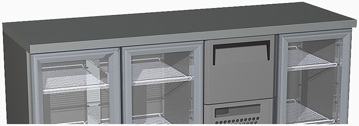 Холодильный стол Carboma BAR-360С служит для хранения продуктов и как рабочая поверхность.