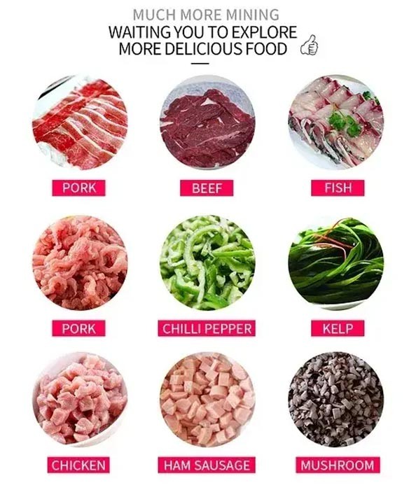 Можно нарезать мясо на ломтики, полоски или кубики при тройном цикле нарезки.